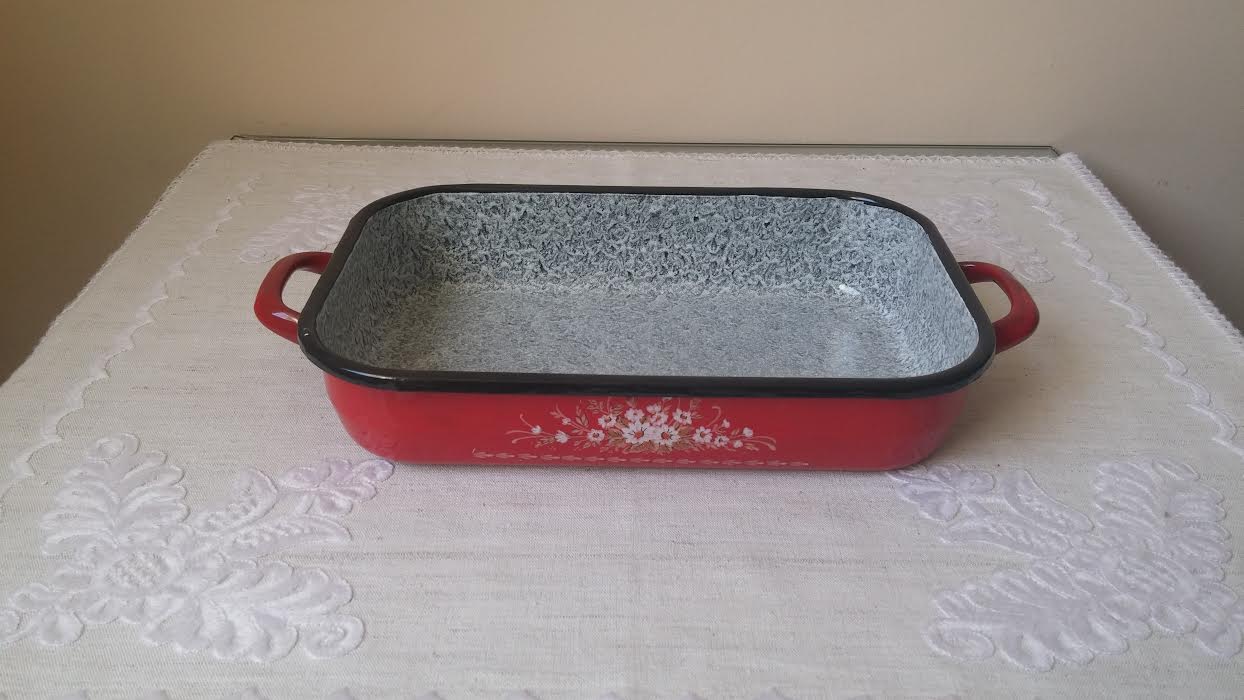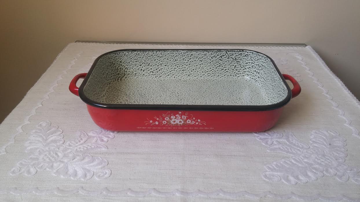 Bevonatos tepsi piros füles 36 cm